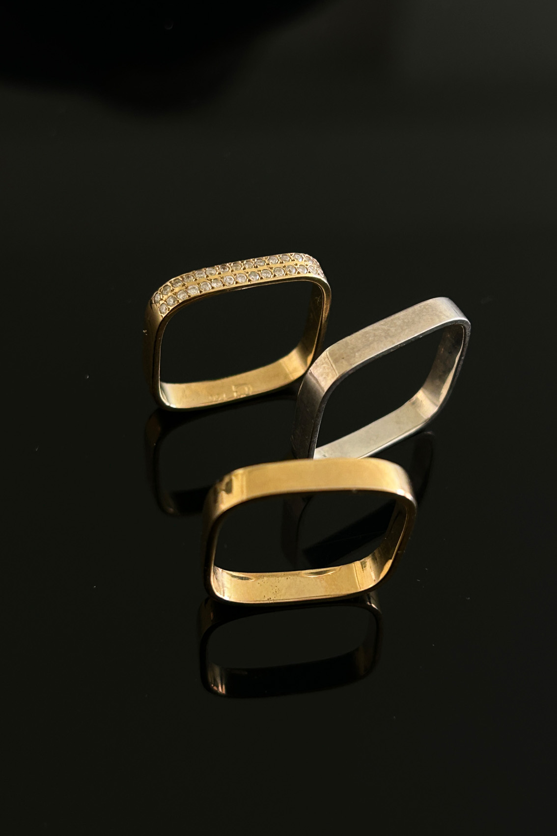 Inspired by the futuristic geometry of the 70’s, this handcrafted square ring is made from Silver 925. its sleek design ensures a comfortable and effortless fit for everyday wear.